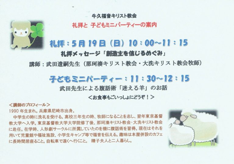礼拝と子どもミニパーティー(2019/05/19)